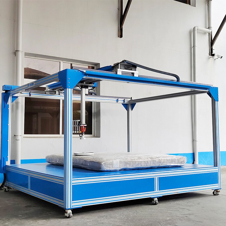 床墊貼合度及硬度試驗(yàn)儀的核心組件之一是滑動(dòng)導(dǎo)軌系統(tǒng),它采用了方形高強(qiáng)度高精度滑軌,這不僅保證了測(cè)試機(jī)構(gòu)在雙軸移動(dòng)過(guò)程中的穩(wěn)定性和精確性,還大大提高了整體測(cè)試的可靠性和重復(fù)性。垂直測(cè)試機(jī)構(gòu)則配置了一套電缸驅(qū)動(dòng)系統(tǒng),動(dòng)力來(lái)源為伺服電機(jī),這種組合能夠提供精準(zhǔn)且穩(wěn)定的測(cè)試力,從而確保所獲取數(shù)據(jù)的高度準(zhǔn)確性和一致性。